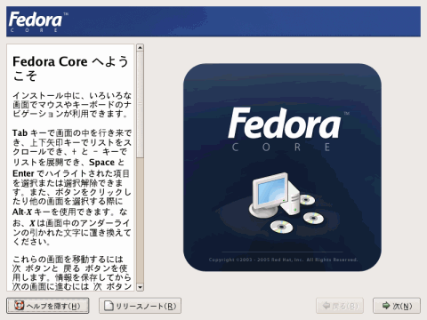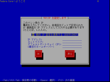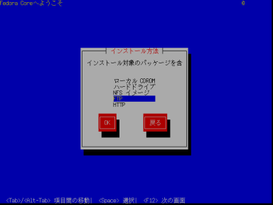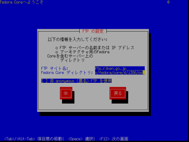 | 4 | FTPの設定 FTPサイト名:ftp.riken.go.jp Fedora Coreディレクトリ:/Linux/fedora/core/4/i386/os/ ![]() |
